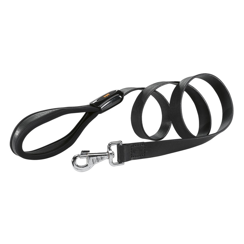 Leather dog leash, equipped with a convenient ergonomic handle, which is patented by Ferplast and ensures a better and more secure grip.