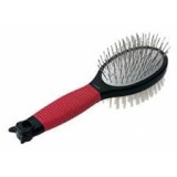 This double brush for short, medium or long-haired cats and dogs is perfect for keeping your furry friend's coat tidy. It has stainless steel prongs with rounded tips that will not irritate the skin and will give a stimulating massage at the same time. The bristles will make your pet's coat shiny and also have restorative properties.