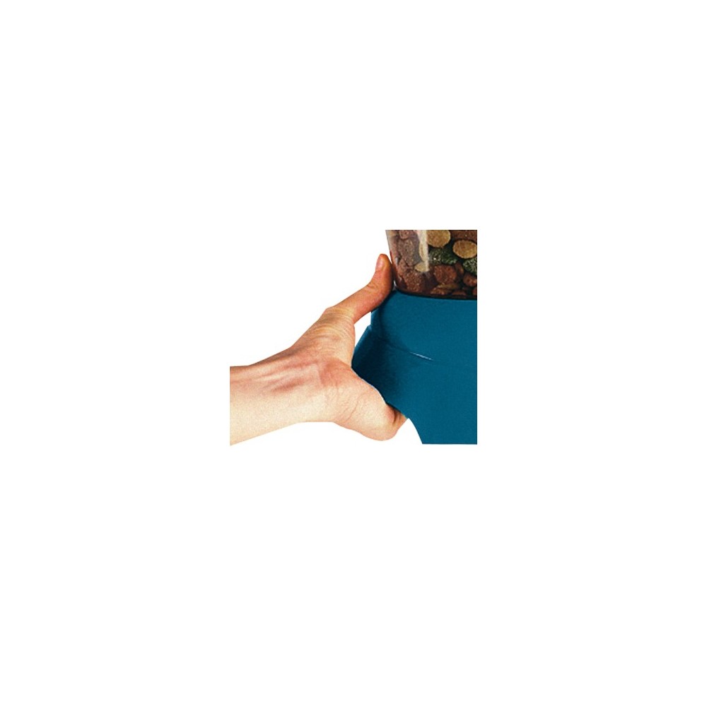Tolva para pienso con base antideslizante, empuñadura ergonómica y topes antideslizantes.
