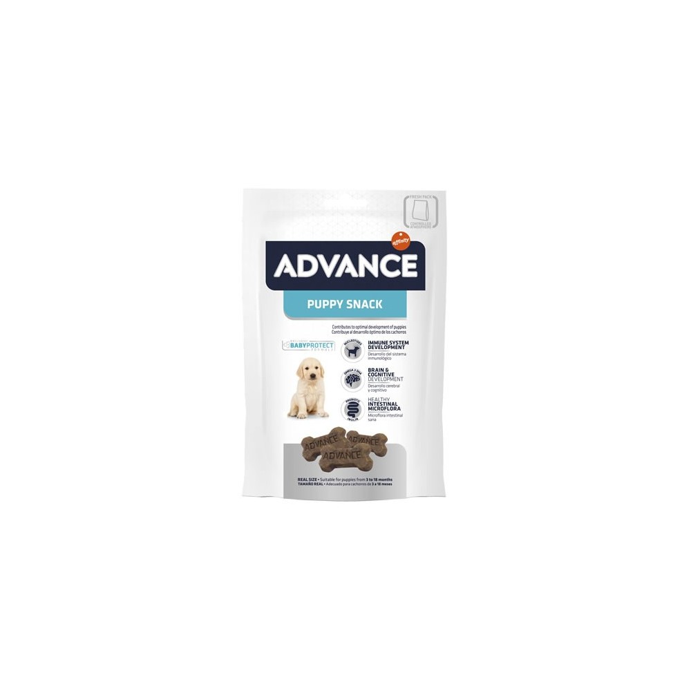 ADVANCE Puppy Snack son unas galletas tiernas y sabrosas especialmente formuladas para contribuir al desarrollo óptimo de los cachorros gracias a la eficaz combinación de nucleótidos, DHA OMEGA 3, Inulina con efecto prebiótico