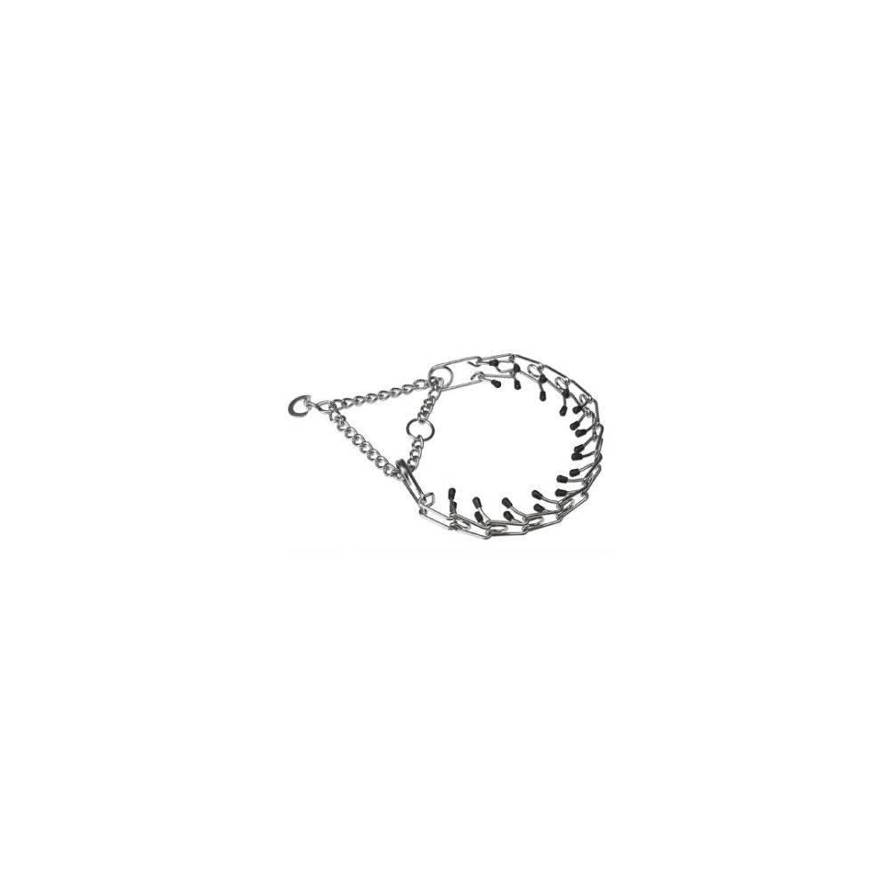 Collar de adiestramiento de acero cromado con picos de goma en el extremo.