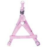 Arnés para perro fabricado en nylon y revestido de piel sintética grabada a bajo relieve. Es de tipo easy step, muy fácil de poner y quitar con un solo clic de su cierre plástico.